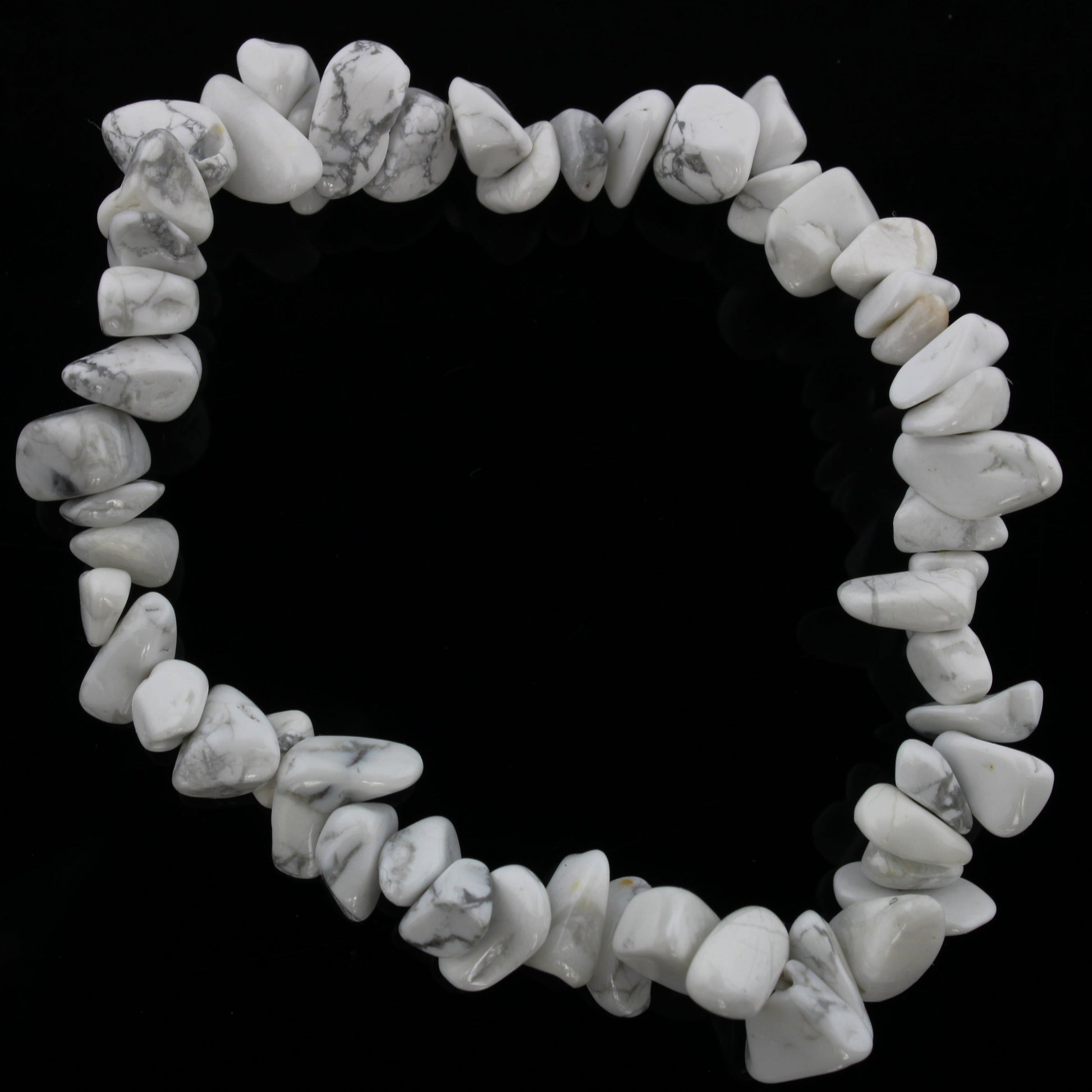 Each bracelet is carefully crafted with genuine howlite white beads, showcasing the stone's natural elegance. The beads are skillfully strung together to create a flexible and comfortable accessory suitable for everyday wear. The subtle beauty of howlite adds a touch of sophistication to your ensemble.